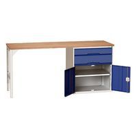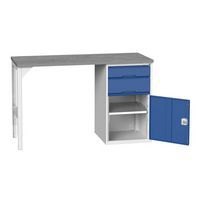 A workbench that is ideal for industrial workplaces, offering drawer, cupboard and shelf storage.