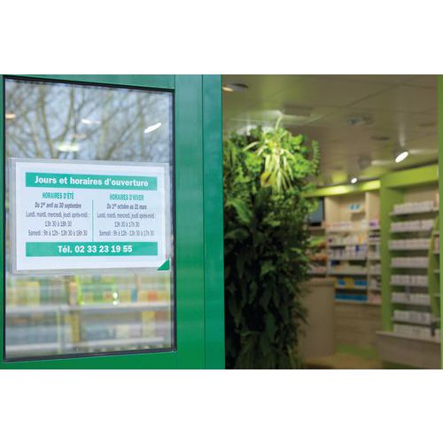 - Ideal for displaying documents on glass walls and display cabinets (transparent on both sides).