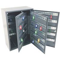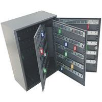 Lockable key cabinet with a tough, steel body.