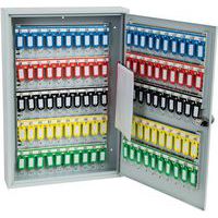 Fitted with a high-quality electronic code lock, programmable with the user's own four-digit code, which can easily be changed when required. Each unit comes with adjustable hook bars and number labels to suit. The 400 and 600-hook units are double-door cabinets. The cabinets have pre-drilled fixing holes for wall mounting. Finished in a high-quality, durable powder-coated finish.