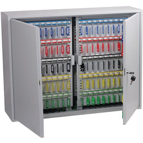 High-quality cylinder lock supplied with two keys. Each unit comes with adjustable hook bars and number labels to suit. The 400 and 600-hook units are double-door cabinets. The cabinets have pre-drilled fixing holes for wall mounting. Finished in a high-quality, durable powder-coated finish.