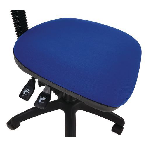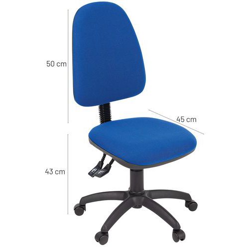 Seat is height-adjustable using the pneumatic cylinder. Backrest is height-adjustable for an ideal working position. Simple, lightweight office chair. Fireproof standard compliant: EN 1021-1 and 2. Durable fabric: 60,000 Martindale cycles (EN ISO 12947). 2 mechanisms available: permanent contact or synchronous.