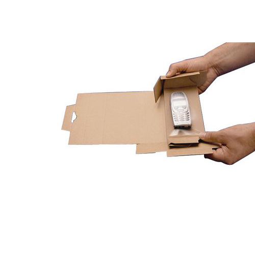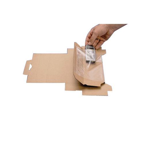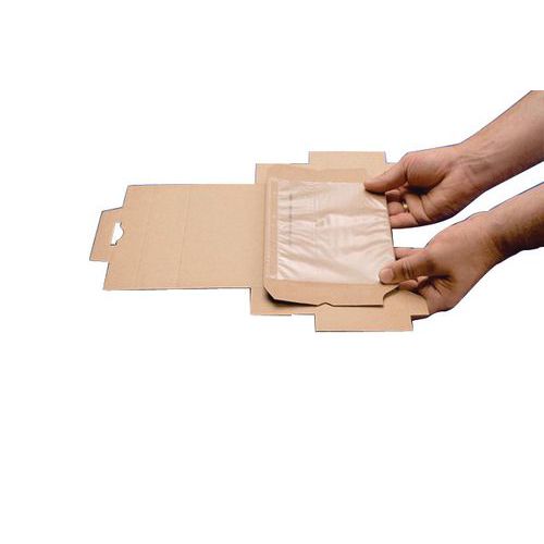 - Pre-cut and pre-shaped cardboard envelope with sections and support tabs.