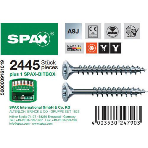 | Product Name | L-Boxx set of TX countersunk head mounting screws, Material: Steel, Type of support: Wood |