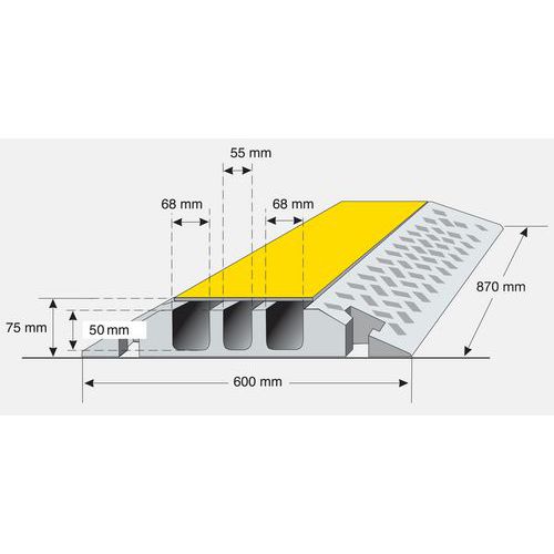 Large Cable Protection Ramps, Model: Centre section, O/A length: 870 mm, O/A width: 600 mm, O/A height: 75 mm Large Cable Protection Ramps, Model: Centre section, O/A length: 870 mm, O/A width: 600 mm, O/A height: 75 mm