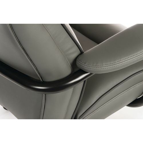 - The bonded leather-faced material gives the chair a classic look, with matching padded armrests.