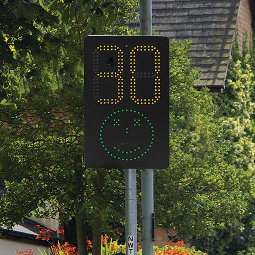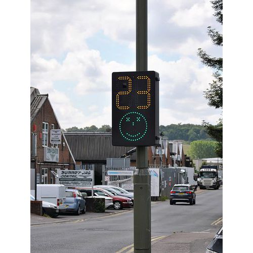 Displays the speed of any oncoming vehicle along with a red ‘sad face’ for speeding vehicles and a green ‘smiley face’ for vehicles travelling within the speed limit. UKCA/CE Certified. Easily relocatable using custom post plates. Integrated Vehicle Detection RADAR. Viewable for up to 100 metres. User-adjustable ‘Trigger Speed’ (5 - 65MPH) and ‘Display Duration’ (0.5 - 7.5 seconds). Auto-dim facility for day and nighttime use. Requires minimal power for efficiency. Vehicle data capture option available. 4G Modem Upgrade: Allows remote access for data download, trigger speed changes and scheduling options. Fully weatherproof. Mains-powered speed signs use the power grid to keep the sign running. Battery-powered speed signs offer a more mobile solution to speeding in your area. The Solar power option enables speed signs to operate using renewable energy. The Data Capture function records a) the speed of every motorist driving past your sign and b) the date and time of each record.