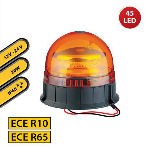 12/24-V flashing LED beacon made up of 45 high-intensity LEDs that emit powerful 360-degree light, with 2 different flashing modes.