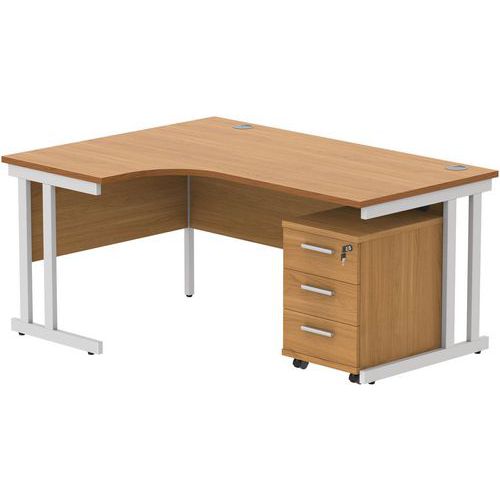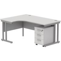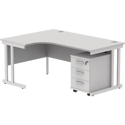 Left Hand Corner Desk - 3-Drawer Pedestal - x2 Uprights - 1600x1200mm