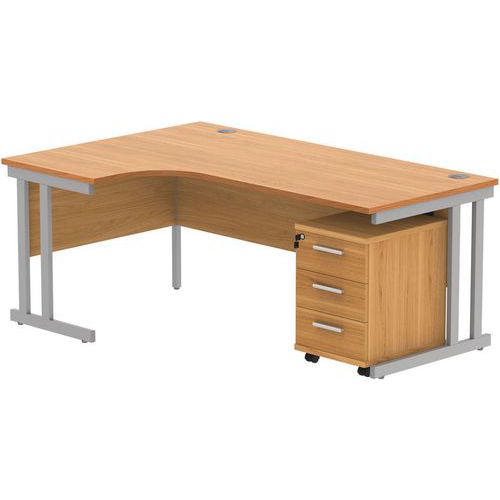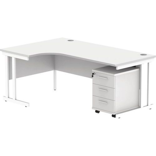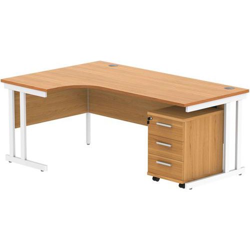 Left Hand Corner Desk - 3-Drawer Pedestal - x2 Uprights - 1800x1200mm