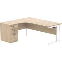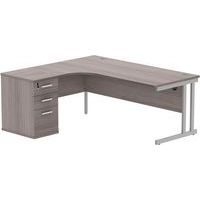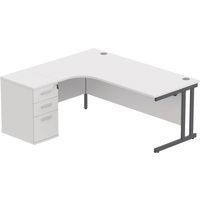 Left Hand Desk - 3-Drawer 600mm Pedestal - x2 Uprights - 1800x1200mm
