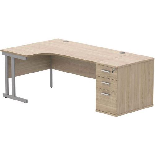 Left Hand Desk - 3-Drawer 800mm Pedestal - x2 Uprights - 1600x1200mm