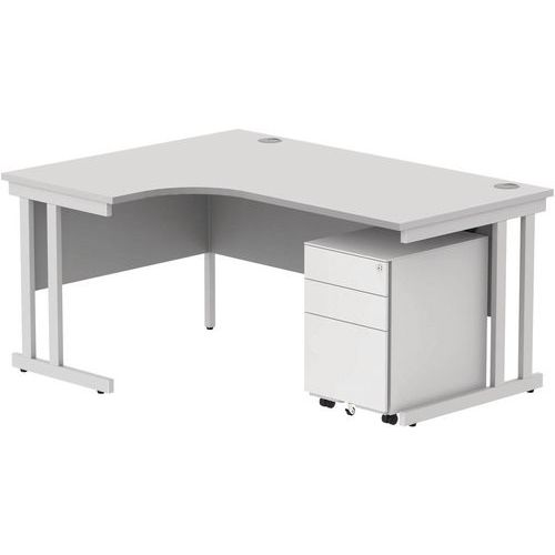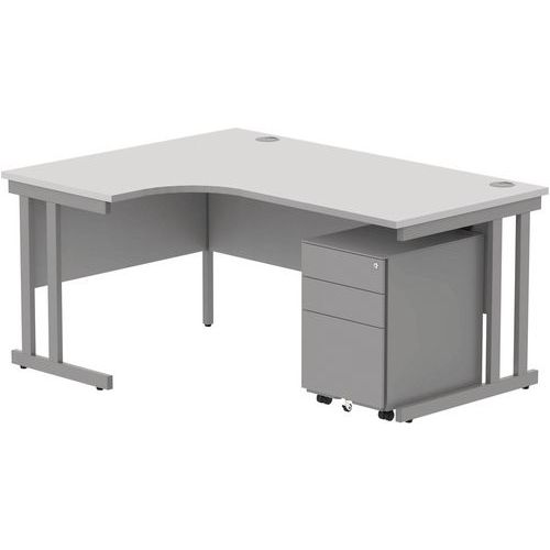 Left Hand Desk - 3-Drawer Under Pedestal - x2 Uprights - 1600x1200mm