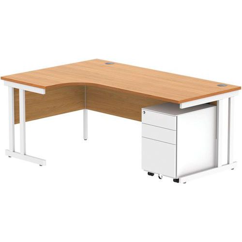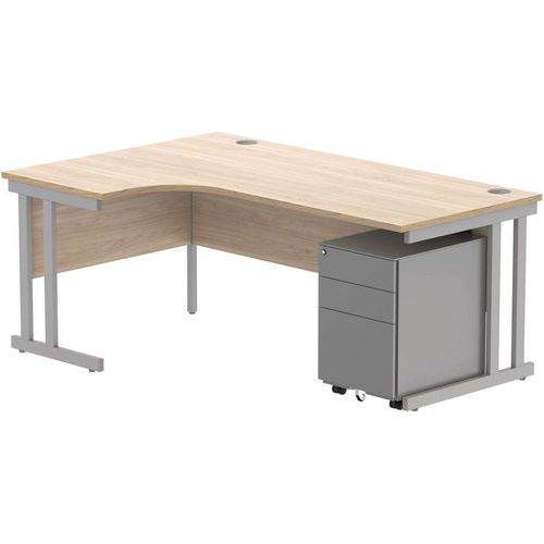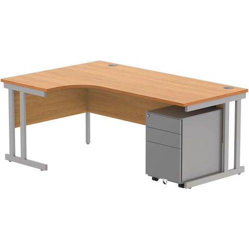 Left Hand Desk - 3-Drawer Under Pedestal - x2 Uprights - 1800x1200mm