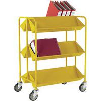 - Sharply angled shelves and sturdy steel frame make it ideal for transporting books, files, or supplies with ease.