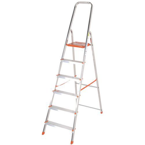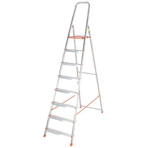 The handrail is positioned extra high, for a user's ease and comfort. Deep treads offer stability and comfort. Strong and sturdy platform. Complies with EN 131. Made in the EU