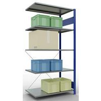 Robust and comprehensive shelving system with an attractive grey or blue epoxy paint finish. Sheet-steel solid shelves that can hold goods of various sizes. Industrial shelving is easy and quick to assemble by slotting the parts together and does not require the use of any particular tools. Shelving is easy to extend by adding 1 or more add-on units.