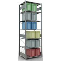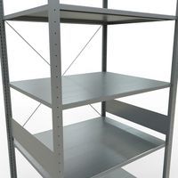 Robust warehouse shelving with a galvanised finish that is highly resistant to damp environments. Sheet-steel solid shelves that can hold goods of various sizes. Industrial shelving is easy and quick to assemble by slotting the parts together and does not require the use of any particular tools. Shelving is easy to extend by adding 1 or more add-on units. Distance between perforations: 25 mm. Height of the first perforation: 50 mm. Height of the first perforation: 22.5 mm.