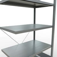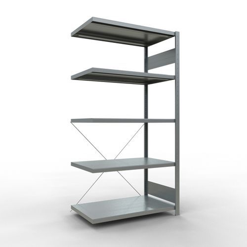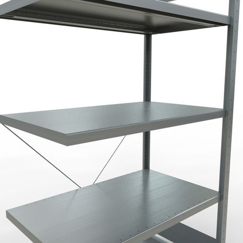 Robust warehouse shelving with a galvanised finish that is highly resistant to damp environments. Sheet-steel solid shelves that can hold goods of various sizes. Industrial shelving is easy and quick to assemble by slotting the parts together and does not require the use of any particular tools. Shelving is easy to extend by adding 1 or more add-on units. Distance between perforations: 25 mm. Height of the first perforation: 50 mm. Height of the first perforation: 22.5 mm.