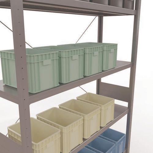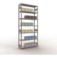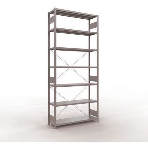 Robust warehouse shelving with a galvanised finish that is highly resistant to damp environments. Sheet-steel solid shelves that can hold goods of various sizes. Industrial shelving is easy and quick to assemble by slotting the parts together and does not require the use of any particular tools. Shelving is easy to extend by adding 1 or more add-on units. Distance between perforations: 25 mm. Height of the first perforation: 50 mm. Height of the first perforation: 22.5 mm.