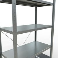 Robust warehouse shelving with a galvanised finish that is highly resistant to damp environments. Sheet-steel solid shelves that can hold goods of various sizes. Industrial shelving is easy and quick to assemble by slotting the parts together and does not require the use of any particular tools. Shelving is easy to extend by adding 1 or more add-on units. Distance between perforations: 25 mm. Height of the first perforation: 50 mm. Height of the first perforation: 22.5 mm.