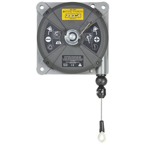 Zeca load balancer with cast aluminium case. Continuous capacity adjustment from the maximum value to the minimum value. The cable length can be easily adjusted to suit every need. Four suspension points and three anchorage points.