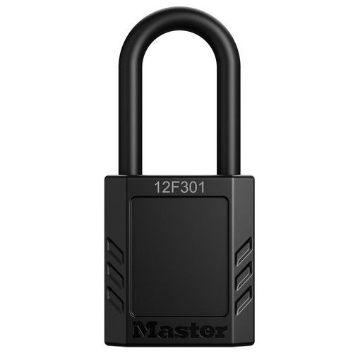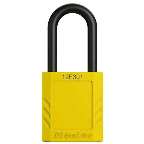 Thermoplastic safety padlock and dielectric nylon shackle Ø 6 mm for electrical installations.