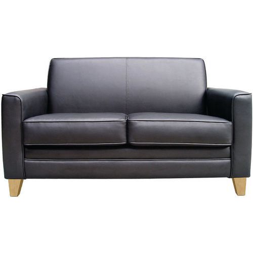Low-Backed Black Leather Sofa - 2 Person - Reception Chairs - Teknik