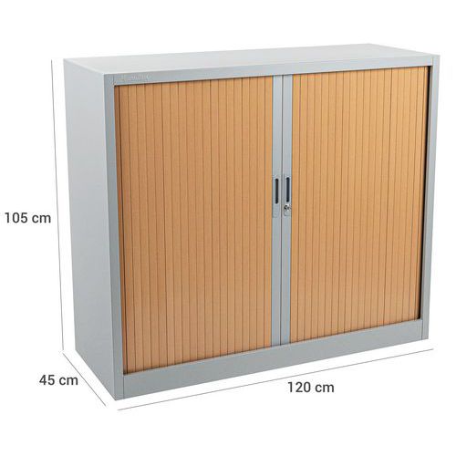 You'll love this easy-to-use, compact cabinet. The shelf can be adjusted and also used for your hanging files. Scratch-resistant epoxy finish. Secure the plastic tambour doors with the cylinder lock. Safety warning:- Install the unit on a flat surface- Use suitable fasteners to fix it to a wall or partition- Ensure you do not exceed the recommended maximum load capacity or load distribution Customer warranty : 10 years Max. load per shelf (kg) : 45 Fire safety : M1
