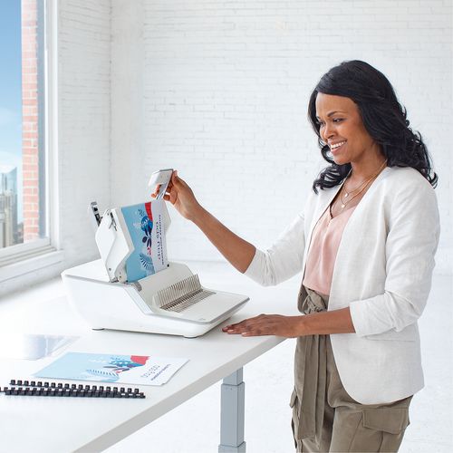 - Easy-to-use Lyra™ 3-in-1 binder for joining, stapling and punching documents.