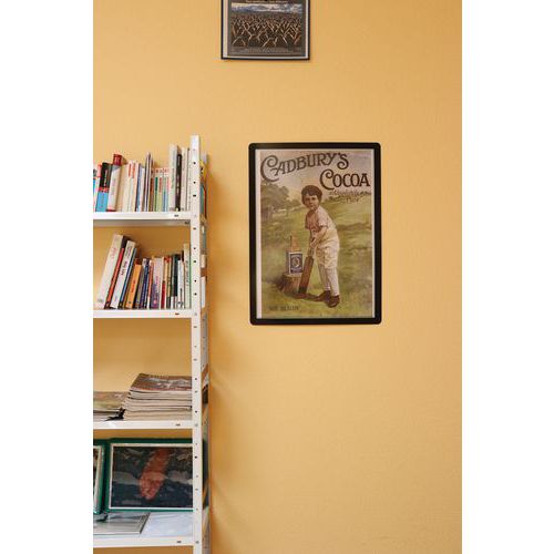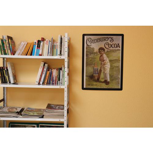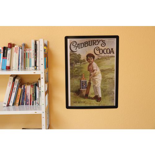 Displays both sides when fixed to glass thanks to the two-sided frame.