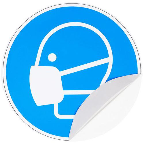 Product Name Mandatory sign, Adhesive: yes, Stiff: no, Norm ISO 7010: yes, Panel shape: Round, Type of sign: Obligation