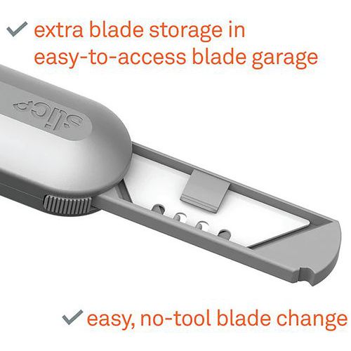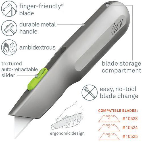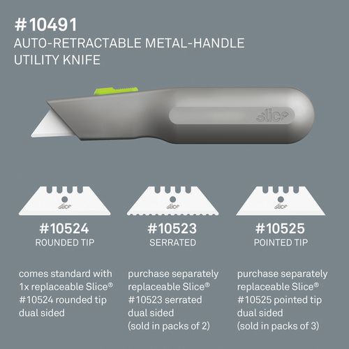 - The rounded-tip blade retracts automatically when the slider is released, keeping you safe on the job.