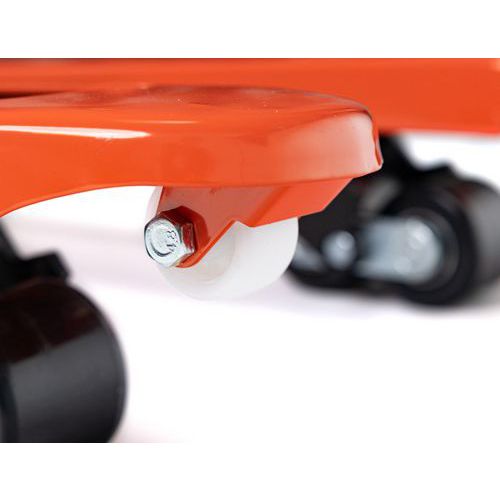 Narrowed fork ends and fitted with double bogie wheels to adapt more easily to uneven surfaces.