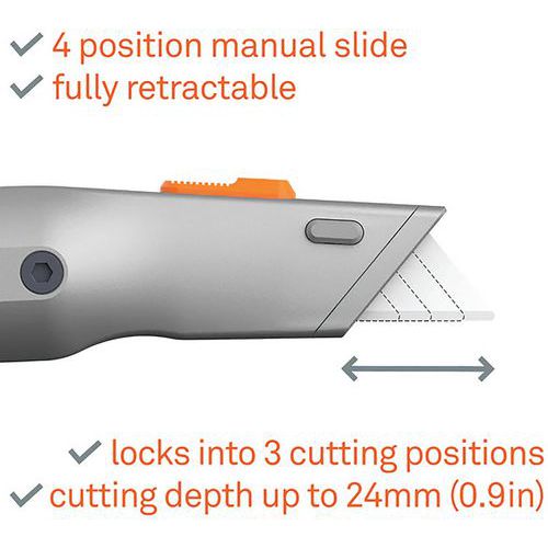 Manual Utility Knife, Retractable blade: yes, Colour: Orange/grey, Cutting depth: 24 mm, O/A length: 170 mm