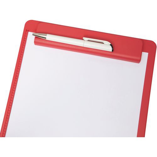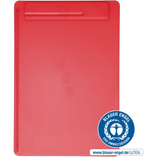 The MAULgo Recycling A4 portrait clipboard 90% recycled PS plastic is made of over 85% recycled plastic (post-consumer material). Comfortable to use with a border on the left-hand side and pen holder integrated into the clamp. Robust with a large plastic clamp with strong metal springs. Clip opens approximately 0.8 cm.