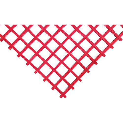 Tough, 2-way, cross-ribbed grid pattern is also 12mm thick, for excellent anti-slip traction. Provides comfort and support when standing for long periods. 22 diameter holes catch swarf/debris and prevent liquid build-up on the surface. Strong PVC material is very resistant to breaking under pressure. Matting is fully reversible, to extend it's working lifespan. Operating Temperature:-20°C to +60°C Conforms to BIA slip resistant test DIN 51097 Category B. Fire tested to DIN 54332(B2) Part of DIN 4102. UV resistant.