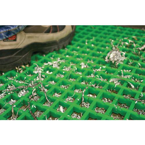 Tough, 2-way, cross-ribbed grid pattern is also 12mm thick, for excellent anti-slip traction. Provides comfort and support when standing for long periods. 22 diameter holes catch swarf/debris and prevent liquid build-up on the surface. Strong PVC material is very resistant to breaking under pressure. Matting is fully reversible, to extend it's working lifespan. Operating Temperature:-20°C to +60°C Conforms to BIA slip resistant test DIN 51097 Category B. Fire tested to DIN 54332(B2) Part of DIN 4102. UV resistant.