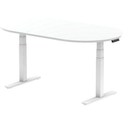 Impulse height adjustable boardroom table. 25mm thick top. The legs are powder-coated in an attractive silver colour. 2mm ABS protective edging. The tough melamine finish resists heat damage. Steel to steel fittings.