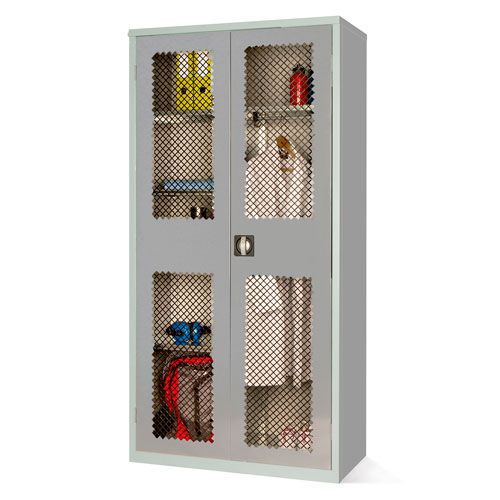 Mesh door cabinet, ideal for keeping an eye on contents and providing ventilation for workwear.