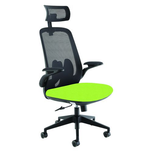 Modern and stylish design. Featuring a breathable mesh back, the Sigma Office Chair ensures excellent ventilation and support. Equipped with folding arms. An adjustable headrest for optimal neck support. The 5-star base with castors allows the chair to easily move to where it is needed.