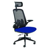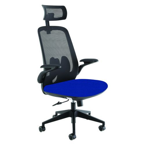Modern and stylish design. Featuring a breathable mesh back, the Sigma Office Chair ensures excellent ventilation and support. Equipped with folding arms. An adjustable headrest for optimal neck support. The 5-star base with castors allows the chair to easily move to where it is needed.