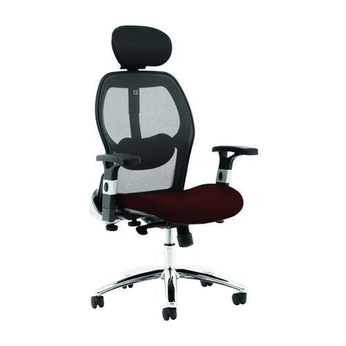 Mesh Ergonomic Executive Chair + Headrest, Colour: Dark red, Material: Fabric, Back height: 76 cm