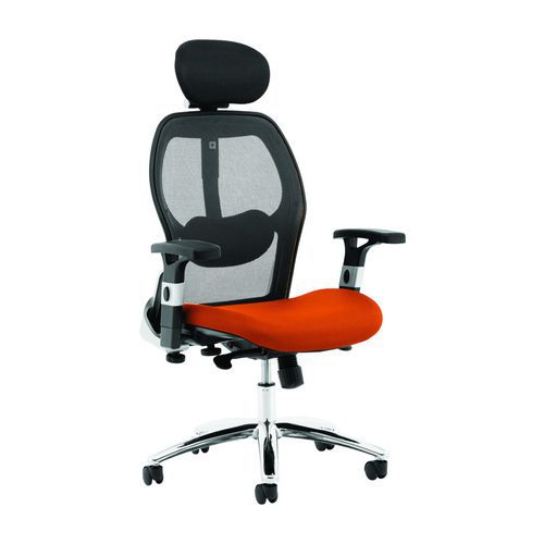 Mesh Ergonomic Executive Chair + Headrest, Colour: Orange, Material: Fabric, Back height: 76 cm