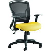 Breathable mesh backrest with a fixed lumbar support pad. Soft moulded twin cushion seat design with stitch detail. Single lever lock tilt mechanism. Weight tilt tension control. Folding arms as standard. Nylon five-star base. Robust castors allow the chair to be moved to where it is most needed.