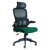 A stylish and modern mesh design. Equipped with padded armrests for superior support, ensuring comfort at all times. Features a practical lock tilt mechanism, enabling you to either lock the chair in an upright position or leave it unlocked. Designed for easy operation. Gas height adjustment system. Adjustable headrest. Offers outstanding lumbar support to reduce the risk of back pain. The arms fold away for space efficiency. The 5-star base with castors allows the chair to easily move to where it is needed.