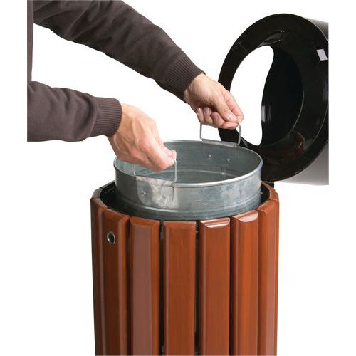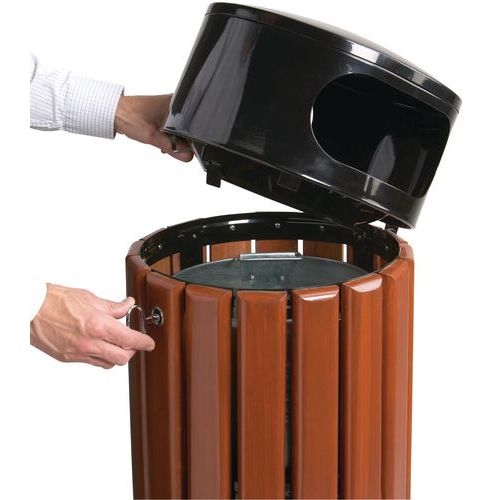 | Product Name | Metal and wood waste bin, Capacity: 40 L, Number of bags: 1, Opening: Slotted, Material: Wood |