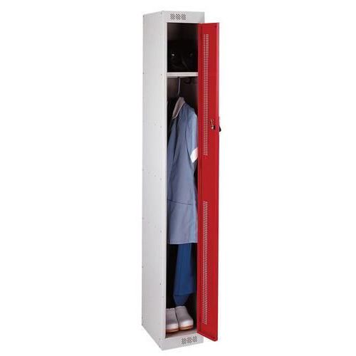 The doors are perforated, so the locker does not trap moisture and keeps the contents well-aired. All the one-door lockers have an internal hat shelf and hanging rail for extra storage. All two-door lockers contain a double coat hook. Robust riveted and welded body made of cold rolled mild steel with an Epoxy-polyester powder coat. The door frame has a cushion bumper for quieter operation, with semi-concealed hinges and door stiffeners for further security. All doors have a reinforced edge to improve strength. Each cylinder lock has two keys and uses an in-frame locking system for added security. Integrated plastic number holder. Pre-drilled fixing holes for bolting lockers together, allowing you to form stacks/nests to suit your needs. Conforms to British Standard for Clothes Lockers BS4680:1996 “Standard Duty”. One-year guarantee. Suits leisure, gym or school environments. This product has been finished with ActiveCoat - a hard-wearing, anti-bacterial powder coating with a 99.9% reduction of E.coli and MRSA super-bug bacteria. It suits even the most stringent hygienic environment. Made in UK