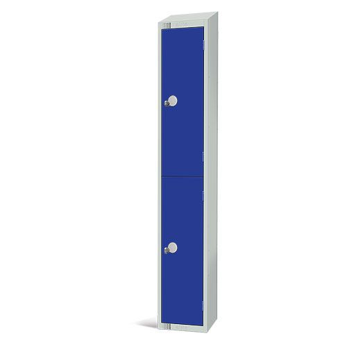Elite GUARD finish looks smart and resists daily wear and tear. The interior shelving is anti-theft, safely separating the 2 compartments. Pre-drilled fixing holes for bolting lockers together, allowing you to form stacks and nests to suit your needs. Sturdy reinforced steel doors with two keys per lock - choose between cylinder or hasp locks. Doors have a reinforcing edge all around to improve strength and rigidity. Doors are positioned within a rebated frame for enhanced security. The unique ventilation system keeps the air fresh, helping to dry damp items. Manufactured from sustainably sourced steel. Comes with a one-year guarantee. Ideal for storing gym kits, office supplies or warehouse PPE. A sloped top helps keep a locker tidy and free from clutter.