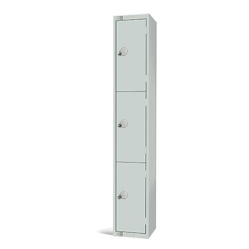 Elite GUARD finish looks smart and resists daily wear and tear. The interior shelving is anti-theft, safely separating the 3 compartments. Pre-drilled fixing holes for bolting lockers together, allowing you to form stacks and nests to suit your needs. Sturdy reinforced steel doors with two keys per lock - choose between cylinder or hasp locks. Doors have a reinforcing edge all around to improve strength and rigidity. Doors are positioned within a rebated frame for enhanced security. The unique ventilation system keeps the air fresh, helping to dry damp items. Manufactured from sustainably sourced steel. Comes with a one-year guarantee. Ideal for storing gym kits, office supplies or warehouse PPE.
